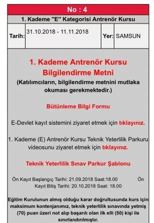 1. Kademe (E) Antrenör Kursu Teknik Yeterlilik Parkuru videosunu ziyaret etmek için BURAYA.