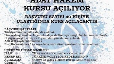 Konya İlimizde Voleybol Hakemlik Kursu Açılması Planlanmaktadır Açılması planlanan hakem kursuna 17-30 yaş arasındaki adaylar katılabilecekler. 40 kişinin müracaat etmesi…