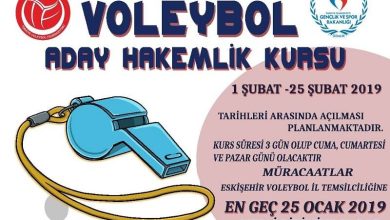 Eskişehir’de Voleybol Aday hakemliği kursu açılacaktır Eskişehir Voleybol İl Temsilciği aracılığı ile Eskişehir ilimizde Voleybol hakemliği kursu açılacaktır. Kurs 1-25…
